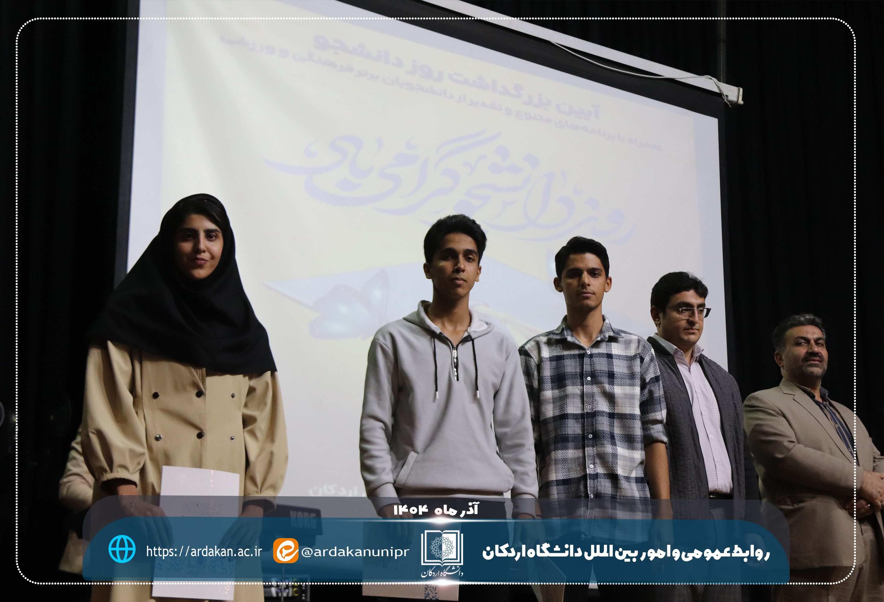 در بخش‌های مختلف این جشن، از دانشجویان برتر فرهنگی، ورزشی و دانشجویی تقدیر به‌عمل آمد. همچنین از انجمن علمی علوم آزمایشگاهی دامپزشکی دانشگاه اردکان که در هجدهمین دوره جشنواره بین‌المللی حرکت با نشریه «نات» موفق به کسب رتبه برگزیده شده بود، تجلیل شد. در ادامه، از تیم رباتیک دانشگاه اردکان که توانست در رقابت‌های ملی جام آبی مقام دوم مجموع مسابقات کشور را به‌دست آورد نیز تقدیر شد و این موفقیت به‌عنوان یکی از افتخارات علمی دانشگاه مورد تحسین قرار گرفت.